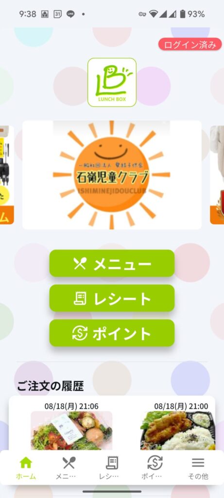 保護者はアプリから食事内容や利用履歴を確認できます。
